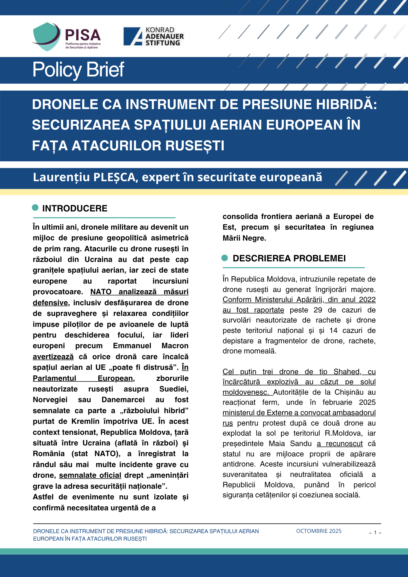 Policy Brief: Dronele ca instrument de presiune hibridă: securizarea spațiului aerian european în fața atacurilor rusești