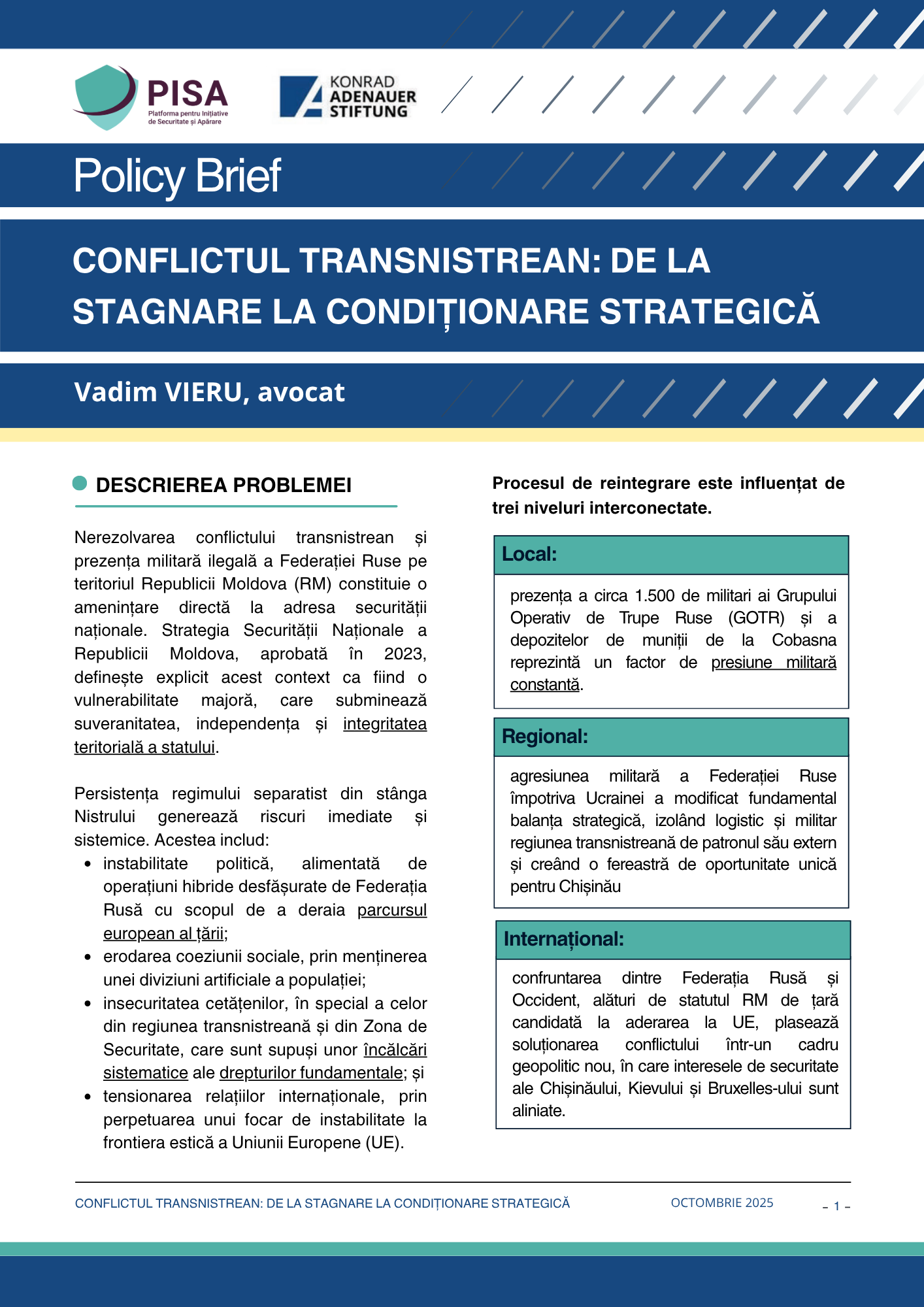 Conflictul transnistrean: de la stagnare la condiționare strategică