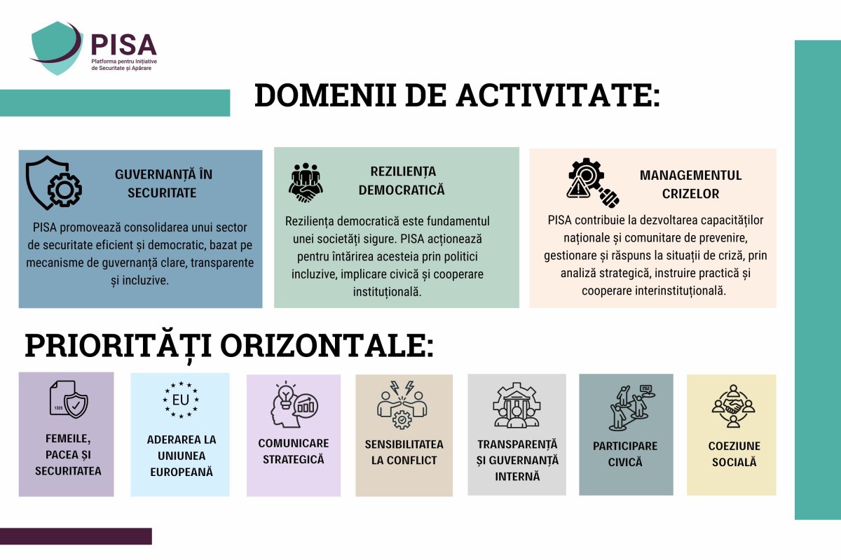 MISIUNE: PISA contribuie la consolidarea rezilienței democratice a Republicii Moldova prin furnizarea de expertiză independentă, promovarea bunei guvernanțe în sectorul de securitate și apărare și implicarea constructivă a societății civile.